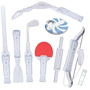 Introducing The 8 in 1 Sports Kit for Wii Sports Resort from CTA Digital A Full Featured Sports Kit for Wii Sports Resport Experience the essential accessories package for Wii Sports Resort with the 8 in 1 Pack for Wii Sports Resort from CTA Digital. Enjoy adding realism to your gaming experiences and easily switch out accessories according to the multitude of games in the Wii Sports Resort video game. Archery Bow Attachment View larger. Eight Totally Unique Fun Accessories for Wii Sports Resort Sword-fighting Sword attachment - Great for sword fighting Canoeing paddle attachment - Get an edge while canoeing Golf club attachment - Perfect for golfing and scoring a hole in one Table tennis (Ping Pong) Paddle attachment – Holds the Wii remote securely in handle Frisbee attachment - Made from soft foam. Securely holds remote in center. Wake-boarding handlebars attachment - Holds the Wii remote in the center, perfect for doing tricks. Archery bow attachment - Includes elastic string on bow to accurately line up your shots Power cruising dashboard handle bars - Perfect for power cruising on a jet ski. Holds the Wii remote, and nunchuck and allows for wrist controlled acceleration. Designed just for Sports Resort This kit is perfect for Wii Sports Resort, so no matter what your favorite sport is, you will have the right accessory to play with. These accessories are easy to take on and off. It is also simple to insert and remove your Wii remote from the cradle. Wakeboarding Attachment View larger. Insert your Wii Remote -An attachable insert firmly holds a Wii Remote with or without the protective silicone skin case and Wii Motion Plus On Screen Equipment - Using accessories from the 8 in 1 Kit is great for Wii Sports Resort because what you have in your hands in real life finally matches what is in your hands on screen. Simple to swap attachments- Included Insert holds a Wii Remote with or without protective silicone skin case. Just click accessories on and off as desired. User Friendly- We designed the Sports Kit to be user friendly. Every Sport in the game has an included attachment. Realism - Use the accessories to completely redefine game Wii Sports Resort game play. Reaction Based Game Play- Try swinging a sword while sword fighting, or holding a golf club while golfing. These are just a few of the reasons this accessory kit is on another level than using a Wii remote alone. The feeling of playing Wii Sports Resort will never be the same! The lightweight plastic material assures that these accessories won’t be a heavy burden on your arms, allowing you to enjoy lengthier playing time without tiring as quickly. This is great for gamers of all ages. These accessories are comfortable to use for extended periods of time. Key Features Jet Ski (Power Cruising Dashboard Handle) View larger. A useful accessory for each sport - A fun, unique accessory for each sport in the game gives you plenty of variety. Great Design - Realistic looks, and lightweight construction. Intuitive Control - Compatible with Wii Sports Resort. Wii Motion Plus- Wii MotionPlus compatible. Use with, or with out a silicone skin- Insert holds a Wii Remote with or without a protective silicone skin case. Universal Remote Cradle- With the remote snugly secured in the cradle, and your chosen attachment screwed to the handle, you can take on the action of Wii Sports Resort like never before. Functionality- The included accessories are designed specifically for Wii Sports Resort mini games. Designers at CTA Digital wanted to create a full featured accessory kit for Wii Sports Resort that would add realism toward game play, and further immerse the gamer. CTA makes this fantasy come true for everyone who plays Wii Sports Resort and loves the feeling of using on screen equipment while playing. Pick up and play for a realistic edge in your games. What's in the Box Eight Totally Unique Fun Accessories for Wii Sports Resort. View larger. 1) Sword-fighting sword attachment 1) Canoeing paddle attachment 1) Golf club attachment 1) Table tennis (Ping Pong) paddle attachment 1) Frisbee attachment 1) Wake-boarding handle attachment 1) Archery bow attachment 1) Power Cruising dashboard handle bars Experience the essential accessories package for Wii Sports Resort with the 8-in-1 Pack for Wii Sports Resort from CTA Digital. Enjoy the realism added to your gaming experience and easily switch according to the multitude of games in the Wii Sports Resort video game. An attachable insert can firmly hold a Wii Remote with or without the protective silicone skin case that comes with the Wii MotionPlus adapter. The lightweight plastic material assures that these accessories won't be a heavy burden on your arms, allowing you to enjoy lengthier playing time without tiring as quickly. With the remote snugly secured, and your chosen attachment screwed onto the handle, you can freely ski, shoot virtual arrows, and throw Frisbees to the action of the Wii Sports Resort video game. This pack includes a Swordplay Attachment, Canoeing Attachment, Golf Club Attachment, Table Tennis Attachment, Frisbee Attachment, Wakeboarding Attachment, Archery Bow Attachment, and a Power Cruising Dashboard Handle.